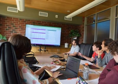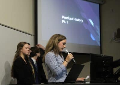 Business students make an investor presentation toward the end of the week promoting the performance of their company. It is an intense, competitive environment and it immerses you in the action. It’s a blast!