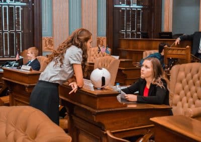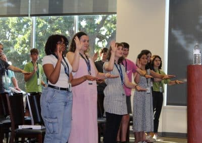 Compete against other teams in a candidate’s gubernatorial primary election! During the week, students act as key members of a candidate’s campaign staff creating policy platforms, voter outreach strategies, and more. Teams work together to raise, manage, and allocate funds appropriately, understand campaign ethics, and convince the public through “door to door” campaigning. Students face off in a debate promoting their candidate in an effort to explain their policies and win the vote of the public!
